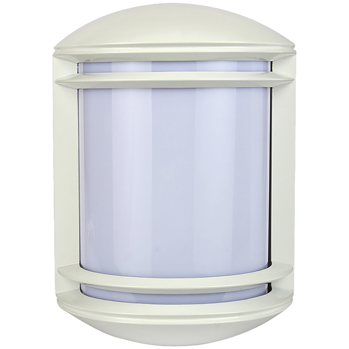 Arbotante de muro para exterior/interior, con un socket E27 (foco no incluido, capacidad máxima de 60 Watts). Funciona con un voltaje universal de 100-240V y tiene acabado en color blanco.