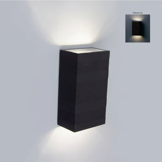 Arbotante de pared Rawenna (Hled-841) de 6W. Luz neutra de 4000K que resalta texturas en muros. Diseño moderno y minimalista en color negro.