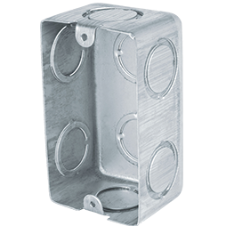 Caja de registro o empotrar (chalupa) de plástico de la marca GAGO. Formato rectangular estándar de 4×2 pulgadas, utilizada para alojar contactos y apagadores. Parte de los accesorios de Conduit PVC Eléctricos.