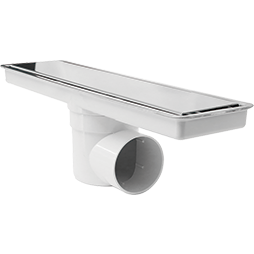 Coladera rectangular con diseño minimalista y doble vista: rejilla de acero inoxidable o cubierta para cerámico. Fabricada en ABS con rejilla reversible de acero inoxidable. Incluye sistema check anti-olores que bloquea malos olores, virus e insectos. Compatible con tuberías horizontales de 2 pulgadas.