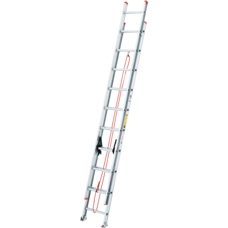 Escalera de extensión doméstica fabricada en aluminio, ligera y resistente. Ideal para alcanzar alturas de trabajo de hasta aproximadamente 6.10 metros (20 pies). Cuenta con una capacidad de carga de 150 kg (Tipo III), lo que la hace segura para tareas del hogar y mantenimiento.