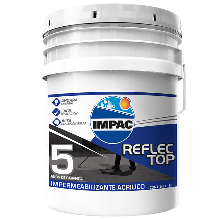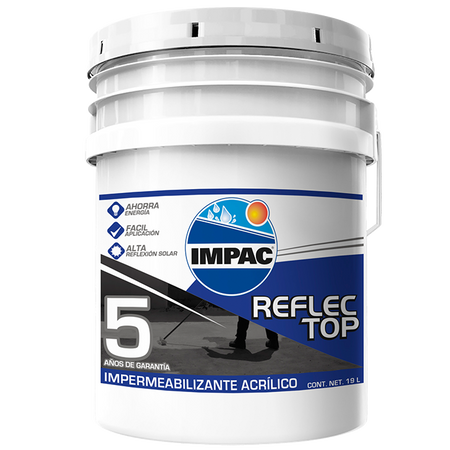Protege tu hogar de filtraciones y humedad con el Impermeabilizante Reflec-Top de IMPAC. Este producto ofrece una cobertura duradera de 5 años, ideal para techos y superficies expuestas a condiciones climáticas extremas.
