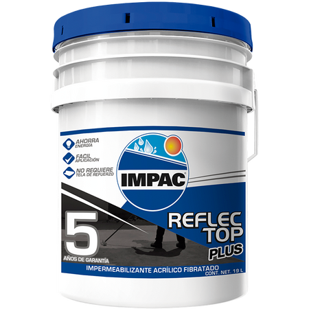 Protege y mejora tus superficies con el Impermeabilizante Impac Reflect Top Plus en presentación de 18 litros. Ideal para aplicaciones en techos y superficies exteriores, este producto ofrece una protección duradera contra la humedad y los factores climáticos adversos.