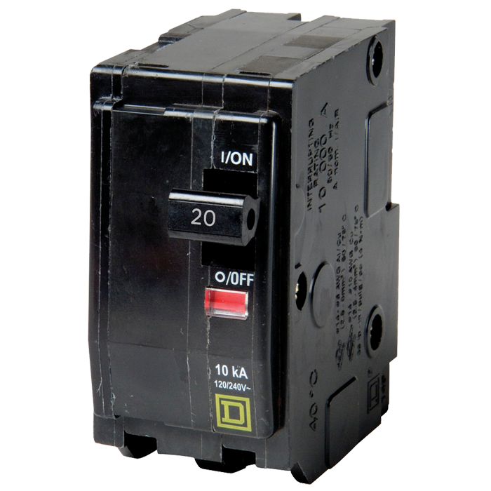 Interruptor termomagnético de alta calidad con 2 polos y capacidad de 20 amperes, diseñado para proteger los circuitos eléctricos contra sobrecargas y cortocircuitos.