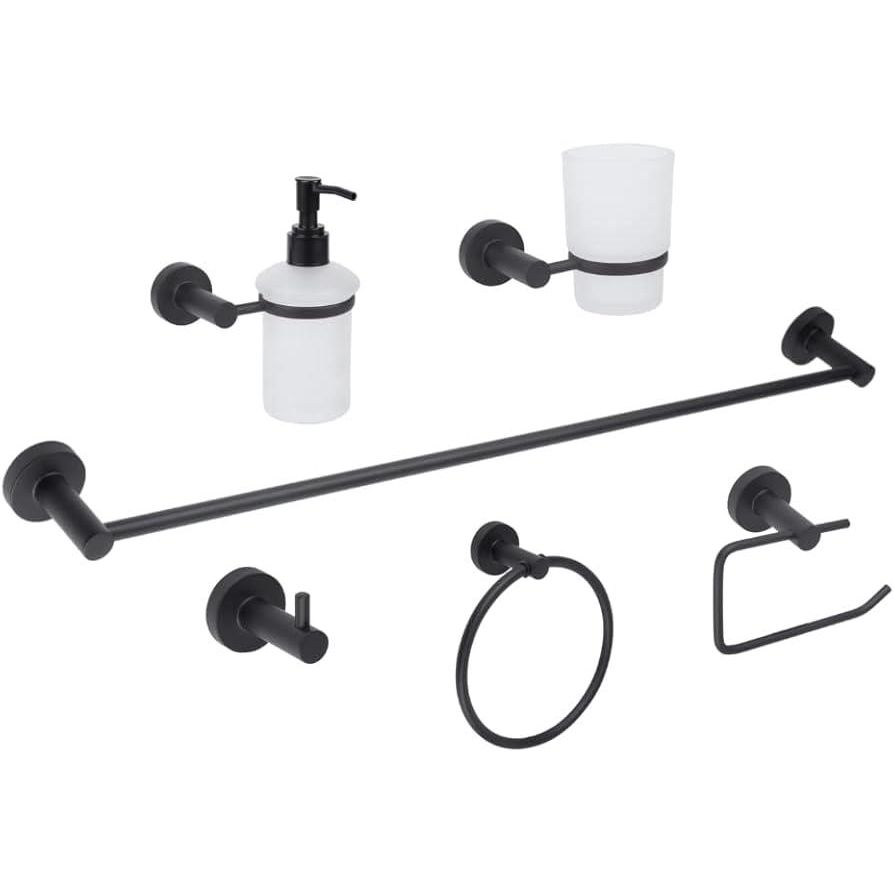 Juego De Accesorios Para Baño De 6 Piezas, Acabado Negro Mate, Modelo 3200.2, Dica