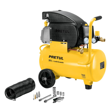 Optimiza tus proyectos de aire comprimido con el Kit Compresor de 20 litros y 2HP, que incluye accesorios esenciales para inflado, pintura, limpieza y más. Ideal para talleres, garajes y aplicaciones domésticas.