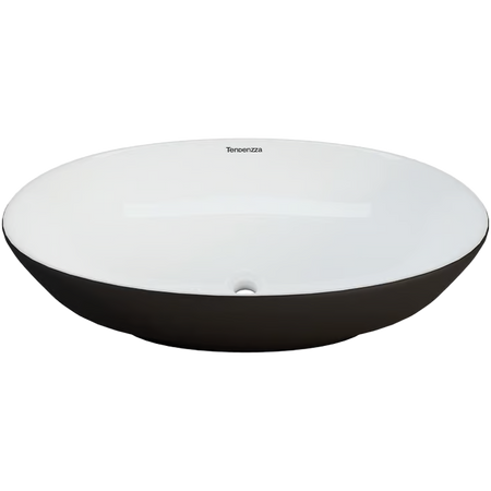 Lavabo de diseño moderno para sobreponer sobre la encimera, disponible en combinaciones de color blanco/negro.