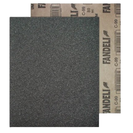 Hoja de lija de agua (para usar húmeda) de la marca FANDELI, con grano de graduación 220 (fino). Utilizada para acabados muy finos y lijado entre capas. Dimensiones de 230×280 mm.