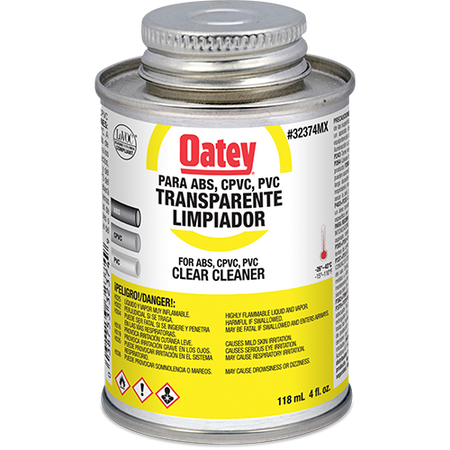 Limpiador Transparente Para Tubos Y Conexiones De Pvc/Cpvc (4 Oz / 118 Ml), Modelo 32374Mx, Oatey Pg3172