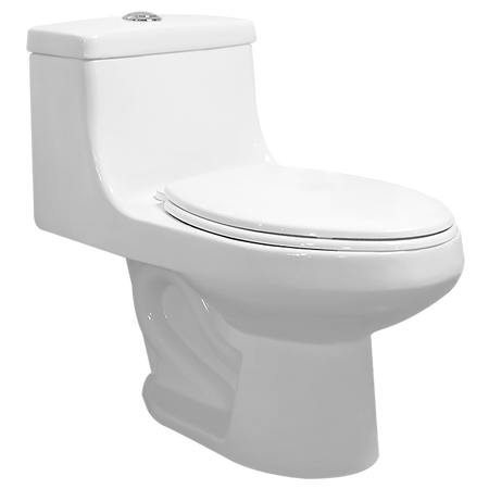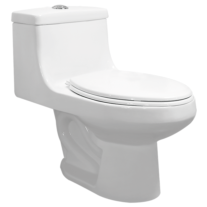 Inodoro de diseño One Piece (tanque y taza en una sola pieza) de la línea Sienna, con manija para descarga y un consumo de agua ultra-bajo de 4.8 litros por descarga.