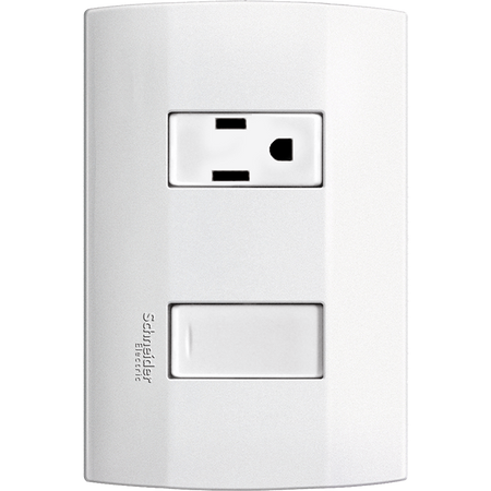 Optimiza la funcionalidad de tu instalación eléctrica con la Placa con Apagador y Contacto Sencillo de 2 Polos + Tierra. Ideal para espacios que requieren tanto un punto de luz como un contacto seguro y confiable.