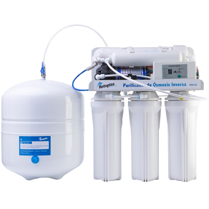 Disfruta de agua pura y segura con el Purificador de Agua de Ósmosis Inversa Rotoplas. Este sistema avanzado de purificación garantiza la eliminación de contaminantes, proporcionando agua de la mejor calidad para tu hogar.