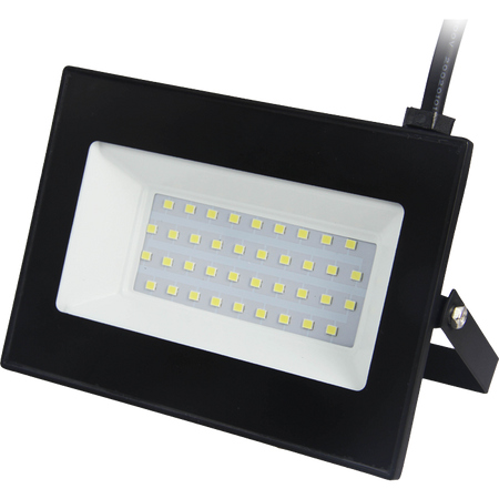Reflector LED de 20W para uso exterior, con luz cálida de 3000K. Ideal para iluminar jardines, patios, fachadas y entradas. Fabricado en aluminio con acabado negro, cuenta con protección IP65 contra agua y polvo. Tiene una vida útil de 30,000 horas, ángulo de apertura de 120°, y flujo luminoso de 1600 lúmenes. No es dimable. Funciona con voltaje de 100-240V a 50/60Hz. Incluye soporte ajustable para instalación sobre piso o pared. [www.elektron.com.mx]