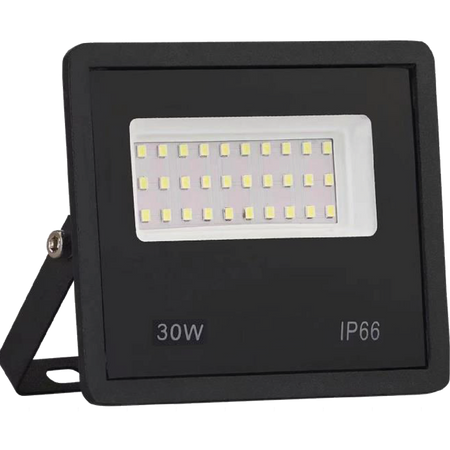 Reflector LED de 30 Watts que ofrece una excelente relación entre potencia y eficiencia. Proporciona luz blanca fría (6500K), ideal para fachadas, patios o almacenes. Está diseñado para soportar condiciones de interior y exterior con conexión a 127V.